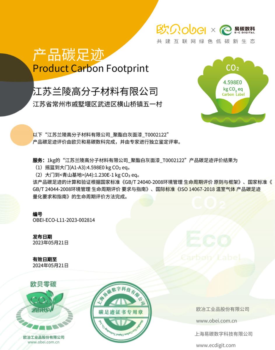 江蘇蘭陵高分子材料有限公司-產品碳足跡證書